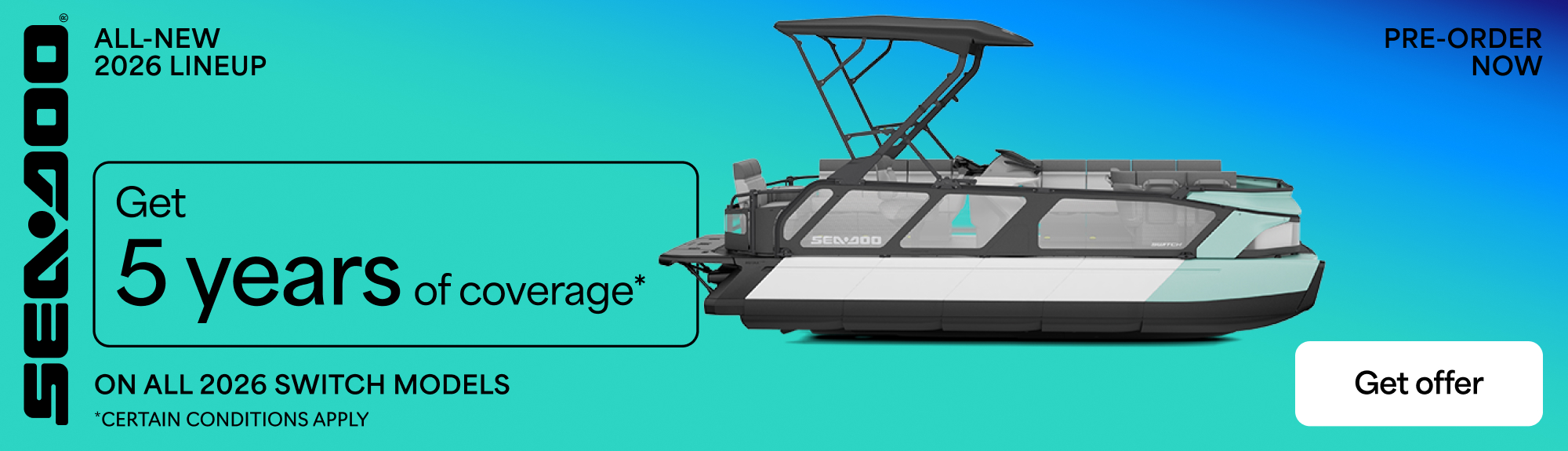 Pre-order and get 5 years of coverage on all 2026 Sea-Doo Switch models